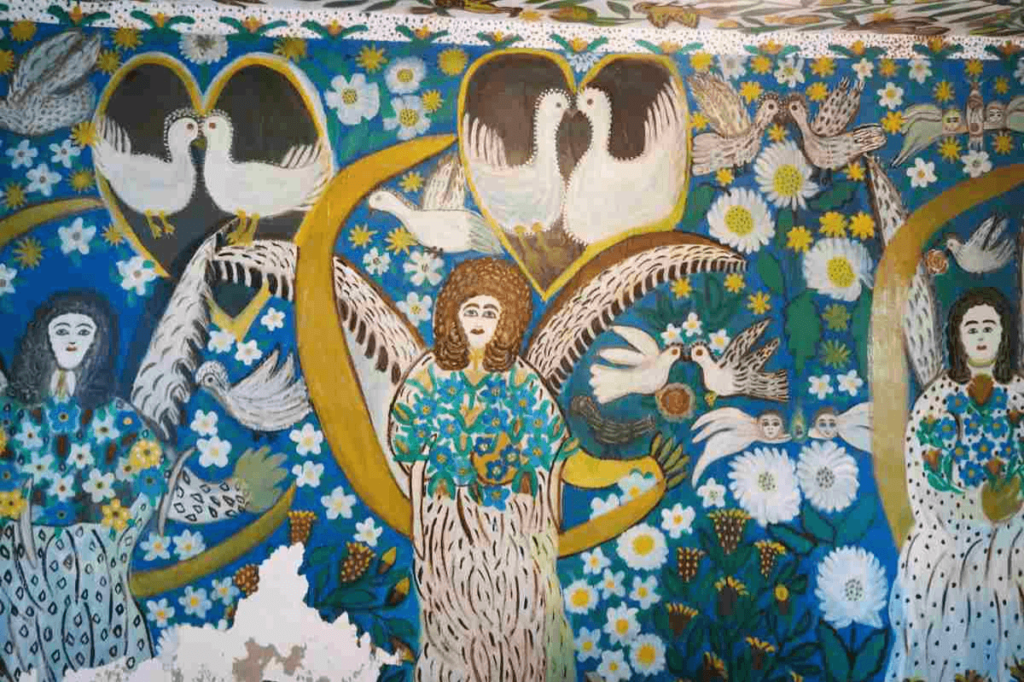 Polina pirmą kartą gyvenime paėmė teptuką būdama 69 metų ir pradėjo tapyti. „Kad neverkčiau, pradėjau dainuoti, atsistojau ant stalo, piešiau ir dainavau: namas tuščias.“ Ji rado paguodą kūryboje ir per 4 metus ištapė paveikslais visus savo namus. Kai kurie jos nutapyti vaizdai įkvėpti asmeninio gyvenimo, kiti – religinių įsitikinimų ir politinių pažiūrų. Kiekvienas iš jų atspindi Polinai svarbią idėją: angelas su raudona žvaigžde, apsuptas baltų balandžių; Dievo Motina su kūdikiu; mergaitė, kuri atrodo kaip kareivis arba slaugytoja, su šautuvais už nugaros ir kt. Tokia vaizdų gausa jos namus paverčia itin emocinga erdve – lyg žvelgtum į atvirą žmogaus vidinį pasaulį. Polinos kūryba buvo jos protestas prieš nekontroliuojamą skausmą, kurį sukelia gyvenimas.